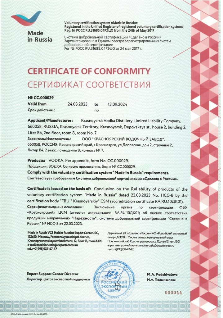 Сертификат соответствия. Система добровольной сертификации "Сделано в России"
